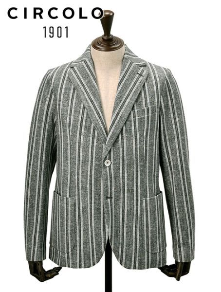 チルコロ CIRCOLO 1901 ストライプ柄 シングル二つ釦 ストレッチコットンジャケット