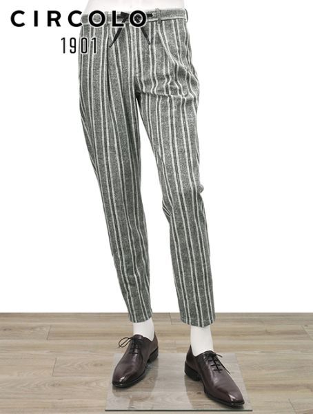 チルコロ CIRCOLO 1901 ストライプ柄 ドローコード付き ストレッチコットンパンツ