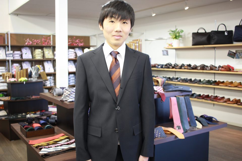 シンプルな白シャツに、落ち着いたブラウンのネクタイ