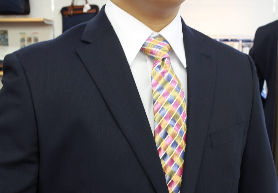 ネクタイはむしろ色柄映えるマルチカラーのチェック柄!