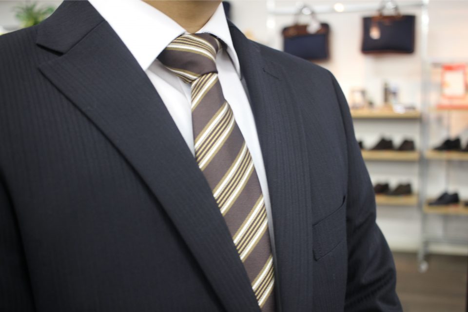 その中で選んでもらったネクタイはブラウンのレジメンタル柄!