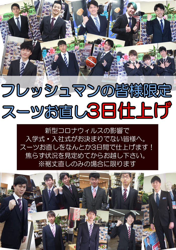 『当店の新型コロナウィルス対処』と『フレッシュマンのお直し日程』について