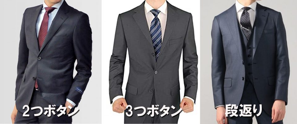 「2つボタン」「3つボタン」と「段返り」スーツ。