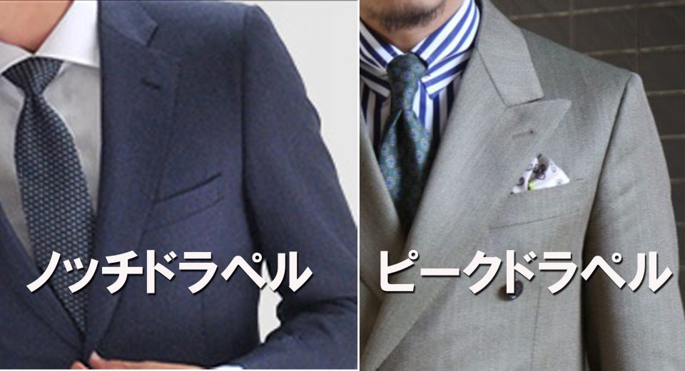 ジャケットの襟の形は、よく見るとデザインが違うのです。まず、襟のことを、スーツの名称では、「ラペル」と言います。