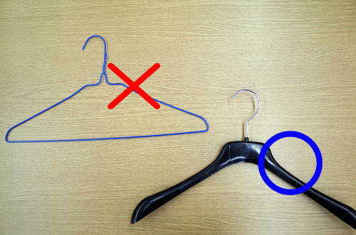 型崩れを防止するため少し厚みのあるハンガーで掛けることをオススメします。