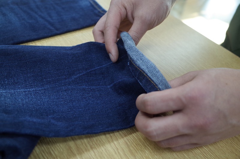 また、この手順の際にデニムをロールアップして履かれている方は、