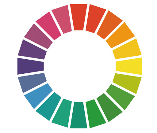 これは色相環というんですが、隣同士や近くの色を同系色といって