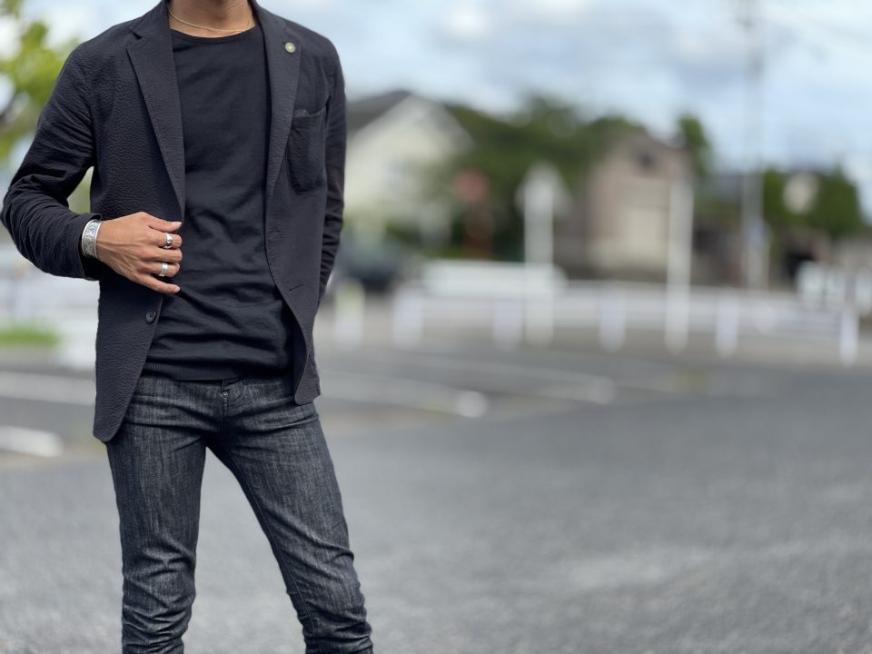 例えばブラック系のワントーンコーディネートを基準に考えてみましょう。