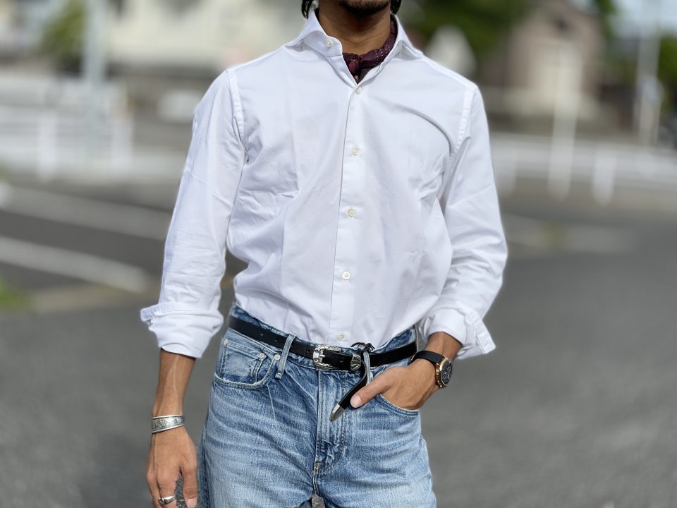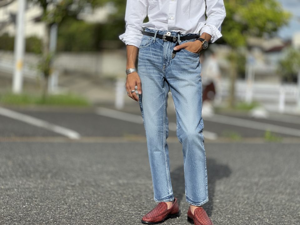 これを白のスニーカーにすれば一般的な着こなしになりますが