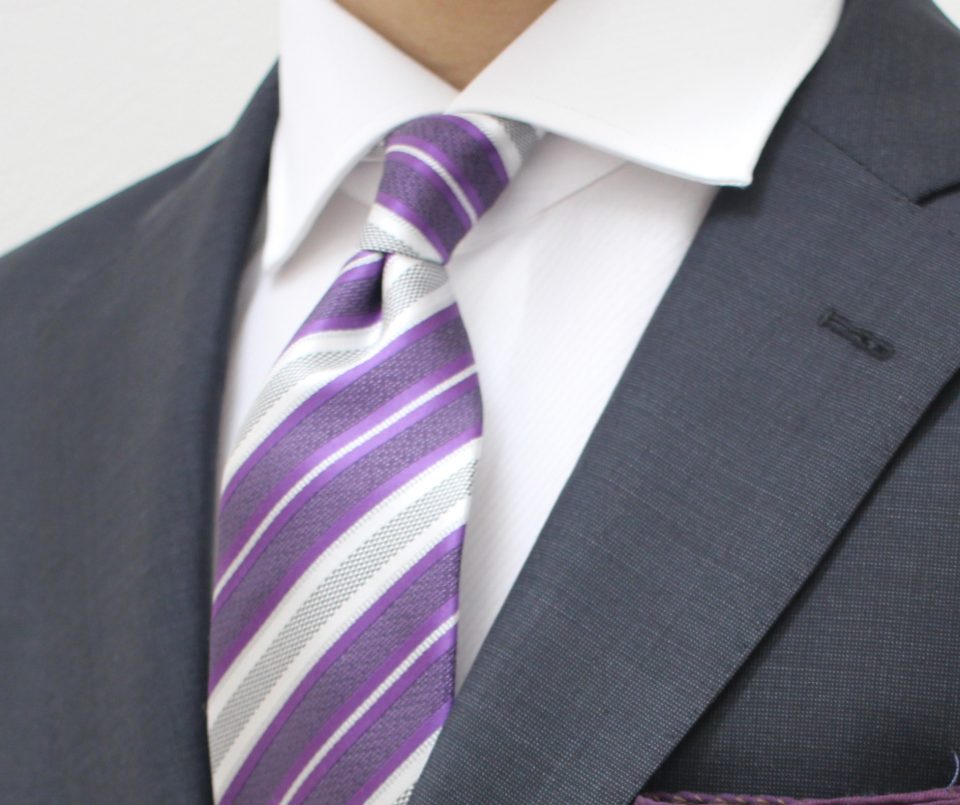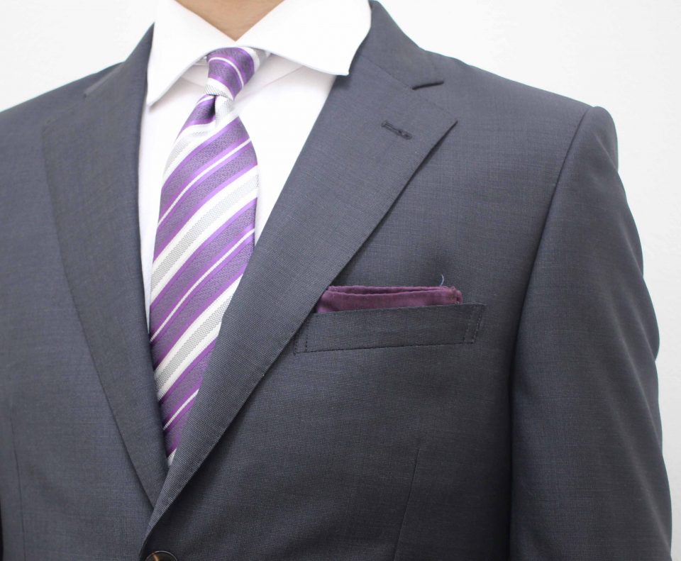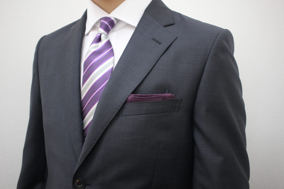 合わせるネクタイと、全く同じ色でなくてもいいです♪例えば、淡いラベンダー色のネクタイに、少し濃いめなパープル系のチーフでも、同色系で合わせることで、ネクタイが目立ち胸元が締まります。