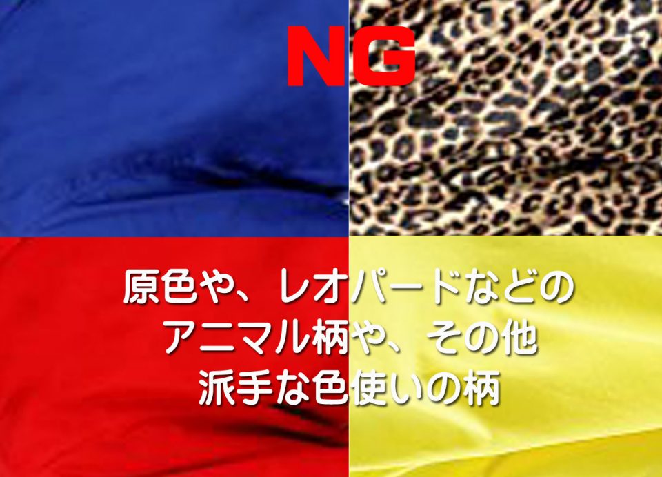 柄も大きくて、色も濃い、目立つような柄はマナーに反します。柄の選び方もです、センスを問われるので気を付けて選びましょう。