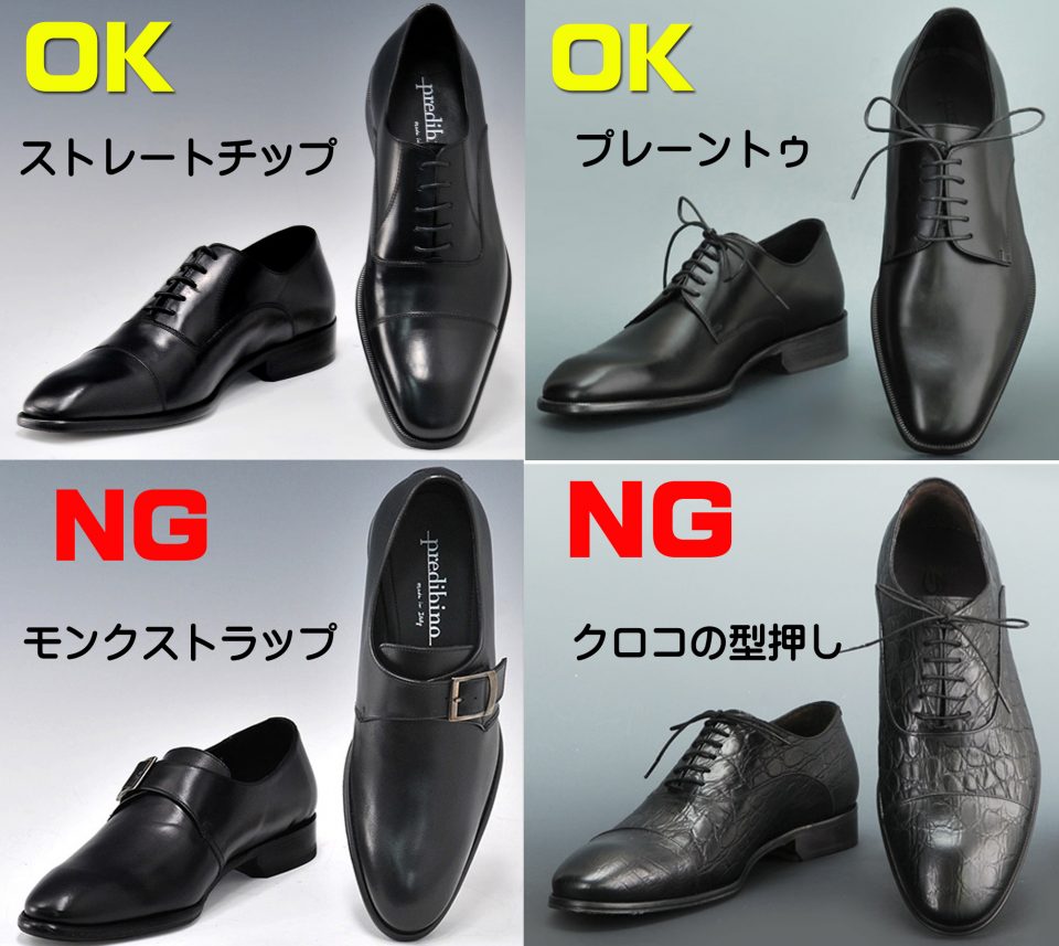気を付けたいのが、金属が付いたモンクストラップや、シャツ、ネクタイ同様に、動物の皮のイメージが強いクロコや、リザードなどアニマル革は、マナー違反となるこがるので避けたほうが良いです。