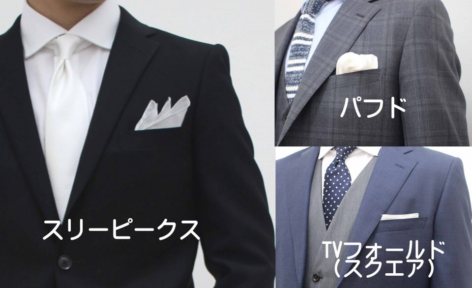ポケットチーフの差し方は、以下の三つを覚えておけば安心です。