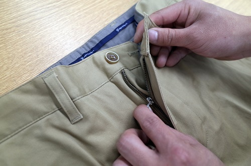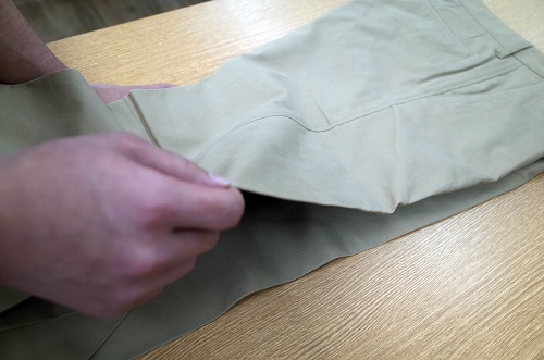 この工程はコットンパンツだけに限らずデニムなども同様で型崩れや無駄なシワを防ぐ効果がありますので、忘れずチェックすべきポイントです。