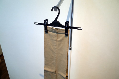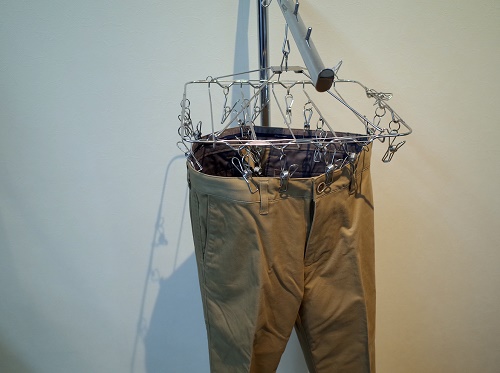 クリップハンガーをお持ちの方は、ズボンの裾部分をクリップで挟み逆さの状態で吊ることでシワ無く保管する事が出来ます。