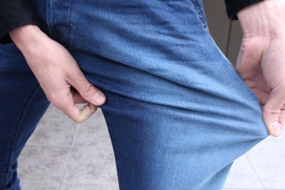 WAITOMに比べるとやや、太もも周りはゆったりとしていますが、膝から裾に