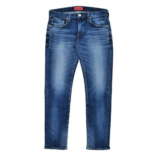 ↑昨今の私の一押しアイテムがこれ。レッドカードのメンズ・ジーンズの定番モデル、リズムのキタ・ミッドユーズドです。シルエットはいわゆるテーパードの効いた若干スリムラインと動き易さ重視のちょっと浅めの股上で、足長効果もあるはず! 今期20SSモデルは昨年の19SSより、レングス(股下)が約5cm短くなっているそうなので、裾直しによるシルエットの変化も少なく、日本人にとってさらに有難い仕様に。+同前年よりも、またくりとワタリもよりフィットするようにシルエットを変更されていうようです。使用者の声をもとに、年々進化してくれている至れり尽くせりのジーンズですね。