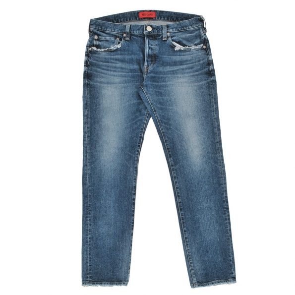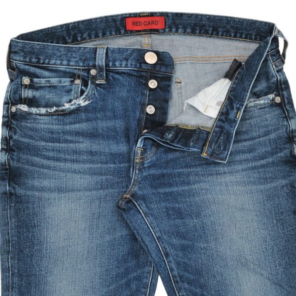 そしてふたつめのフィット、これはジーンズの原型はアメリカと言いましたが、そのおかげもあり大半のジーンズは欧米人向きのデザインなんですね。なので明らかに体型の違う日本人にはそもそも合わないし、穿いてもやはり美しくないんですね。もちろんめっちゃイイ体型の持ち主も日本にはいますんで、そういった方々は別ですが。そんな中、このレッドカードはメイド・イン・ジャパンにこだわってるだけあって、フィット感に重要なデザインそのものも日本人の体型をとらえた、まさに日本人のためのジーンズと言えます。特に圧巻なのはレディースモデルです。うちでは扱ってませんが、レディースのインポートパンツって兎に角、日本人女性の体型には程遠いデザインで合わなかった訳ですね、特にジーンズは。それを日本人女性が穿いてもっとも美しくなるように、こだわりのデザインにしたことで、今のレッドカードの人気が高まったといっても過言じゃないと思います。