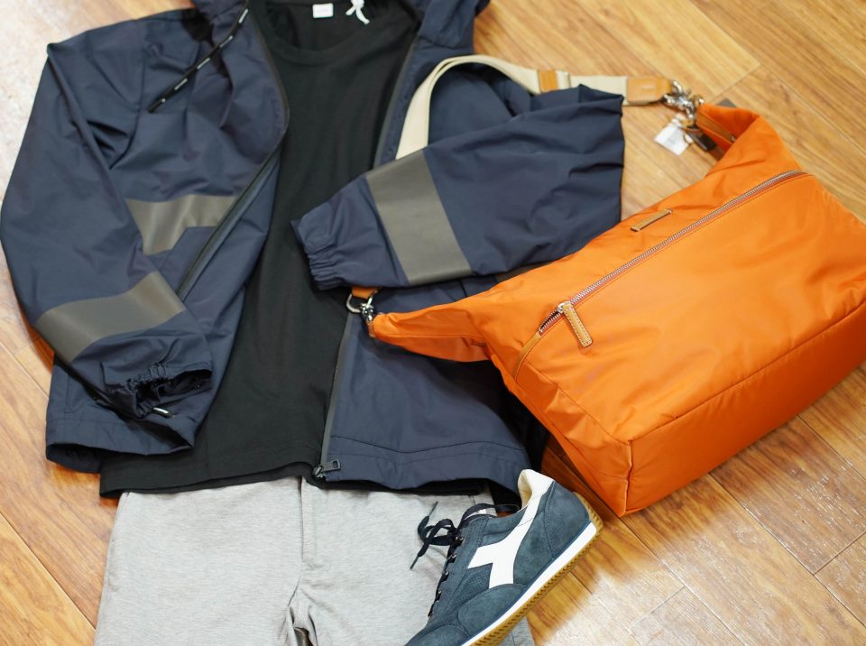 カジュアルなアイテムながら、品よく発色のいいナイロンにネイビーカラーがベストマッチ。