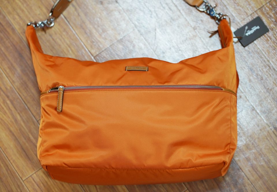 ブランドはDaniel&Bob(ダニエル&ボブ)ですね。鮮やかなオレンジ色が特徴のナイロン×レザーのコンビショルダーバックですね!