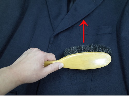 袖や襟など細部にももちろんゴミ、ホコリが溜まりますので細部のお手入れも同様に行います。細部に関しては手首を小刻みに動かし丁寧に細かくブラッシングしていきます。汚れやすい腕や裾は最後に取り掛かることで、ホコリが残らず効率的ですよ。