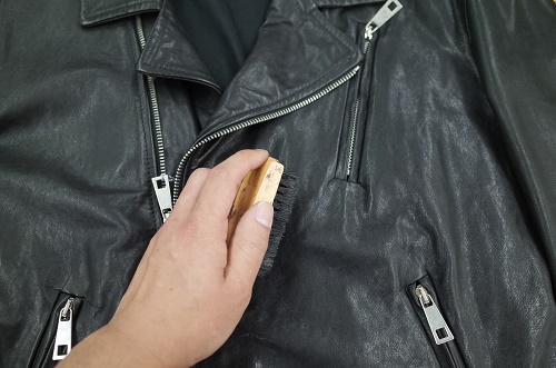 まずは、レザーアウターを買った際に早速家で「防水保護」のお手入れを行います。ここでは雨や汚れの防止策として行う過程です。