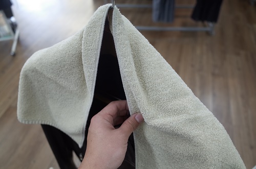 クリームを塗り終わったら通気性の良い場所でハンガーに掛け乾かします。