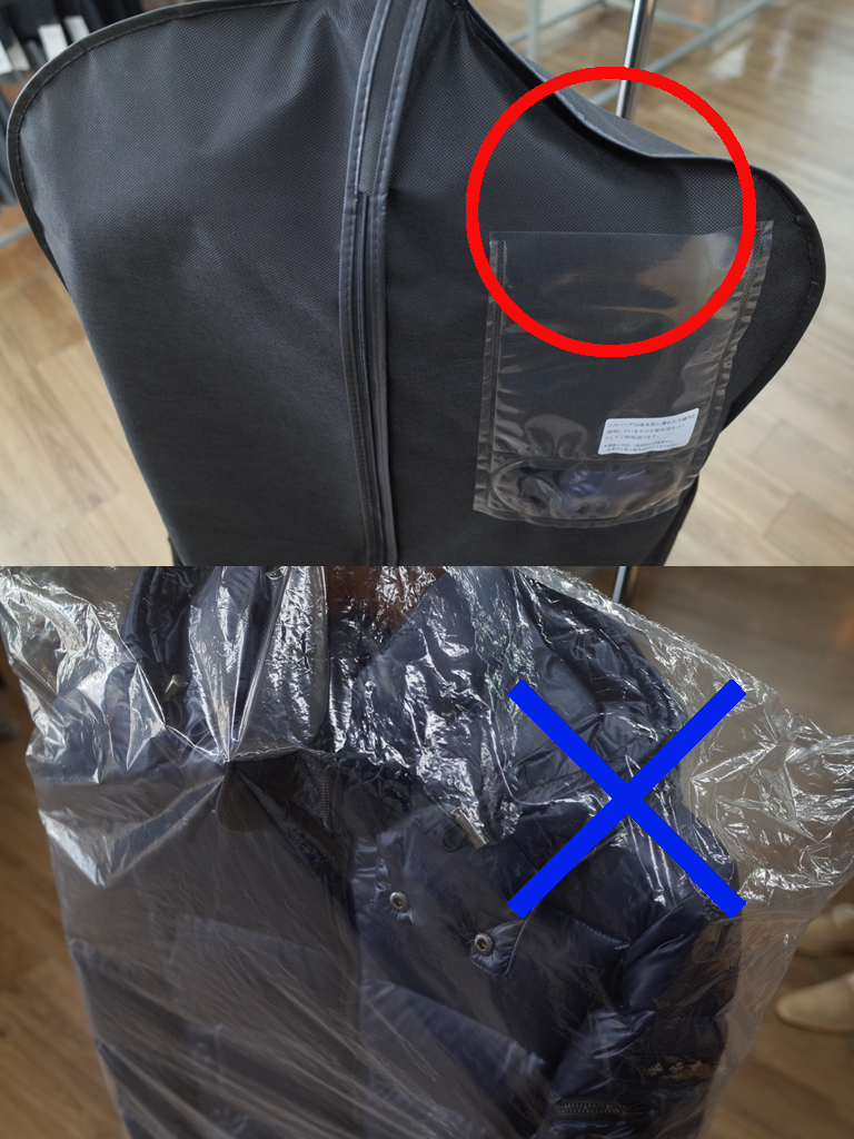 シーズンオフで保管の前にクリーニングに出す人も多いと思います。クリーニングから戻ってきた際、ビニールカバーは外し保管前に半日ほど乾燥させて下さい。スチームで生地が水分を多く含んでおり、カビやニオイの原因から防止する為です。