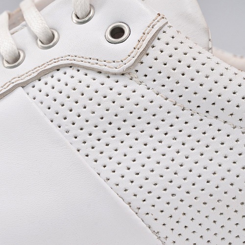 スムースレザーをアッパーに使用したスニーカーは一般的にレザースニーカーと呼ばれており、革靴と同じようにアッパー自体の耐久性が優れておりスニーカーの中でも上品な印象があるため、大人のドレスカジュアルにも相性抜群で経年変化も愉しめる素材となります。