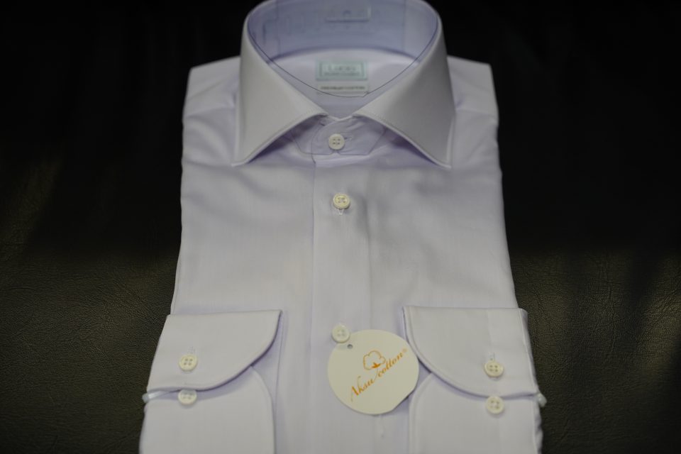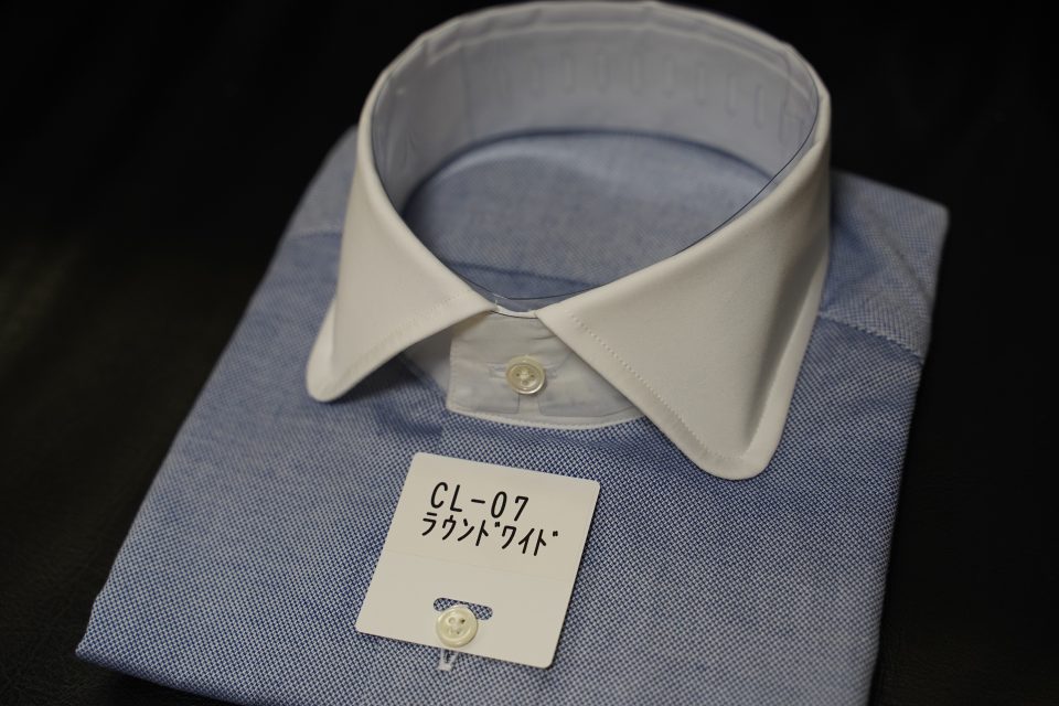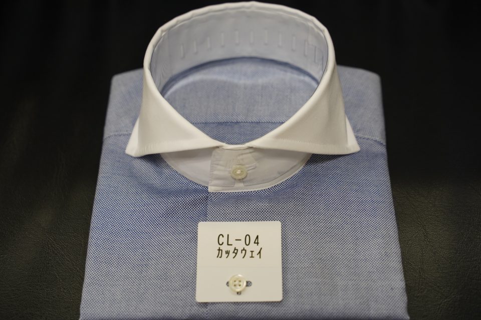 ・ワイドカラー ・衿が100~120度前後でかなり開いている。フォーマルからビジネスまで万能に決まる衿型。