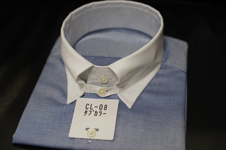特徴は左右の衿にタブ(つまひも)があり、タブのボタンを絞めて着るシャツになります!