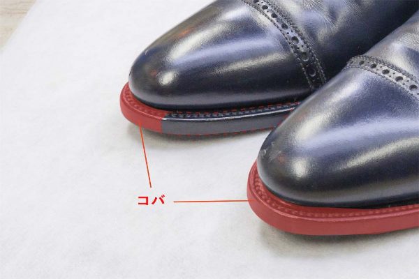 アメリカやイギリス靴などの質実剛健な靴に多く見られる、グッドイヤーウェルト製法はウェルトと言われる革製の張り出しを縫い代とするため、インソール、アッパーを縫い合わせるのにコバと言われる、アッパーよりも外側にはみ出す部分が不可欠になってきます。コバはウェルト製法には欠かせないパーツであると同時に、アッパーを壁や障害物から守る重要なファクターです!✨