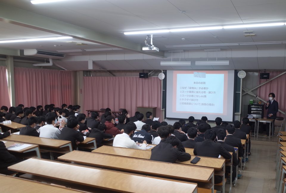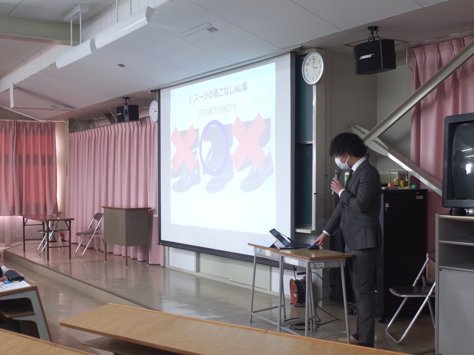 本日は弥富市にあります黎明高校さんにて、スーツに関する授業のご依頼をいただき行ってまいりました!
