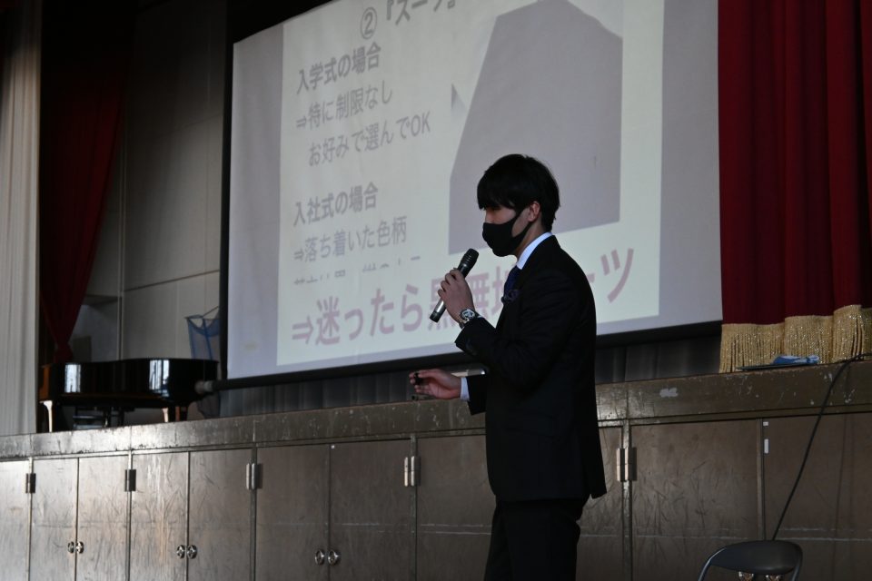 僕達メンズコレクションHAYASHIでは、毎年各高校様、大学様にお邪魔させていただいて、スーツ及び身嗜みにおける講義を行ってます!