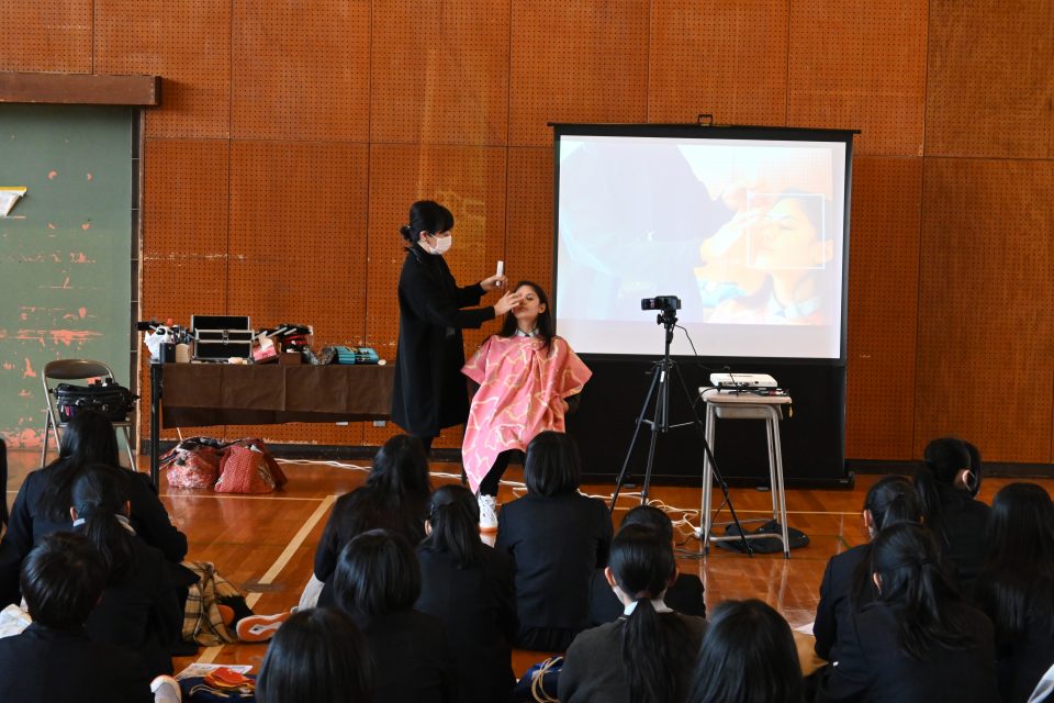 女子はスタジオCHIYOKAからプロのメイクアップアーティスト、千代香さんにお越し頂きメイクアップ実演を行いました~!