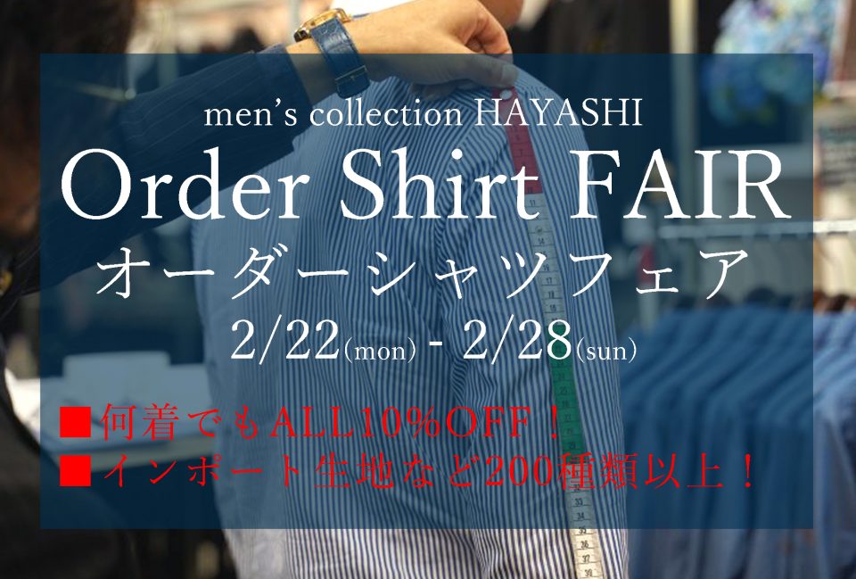 今回は来る2/22(月)~28(日)までの一週間、三好店限定で開催する、【オーダーシャツフェア】についてをお話ししていきたいと思います!