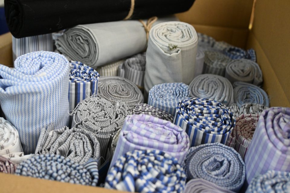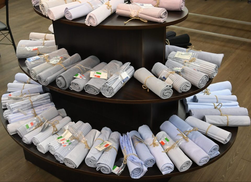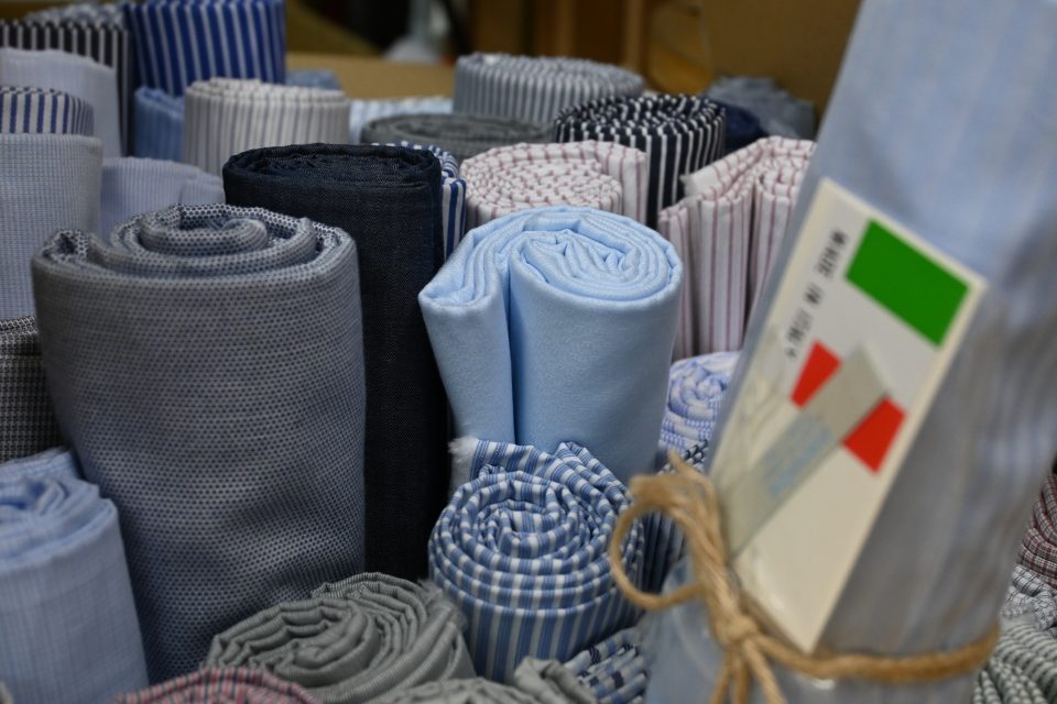 世界の一流ビジネスマンが愛用する、高級シャツ生地として名高いブランドがどっさり集まっており、その様は圧巻です!