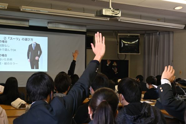 林商店では毎年高校さま、大学さま、企業さまにお伺いさせていただきスーツのマナーやルール