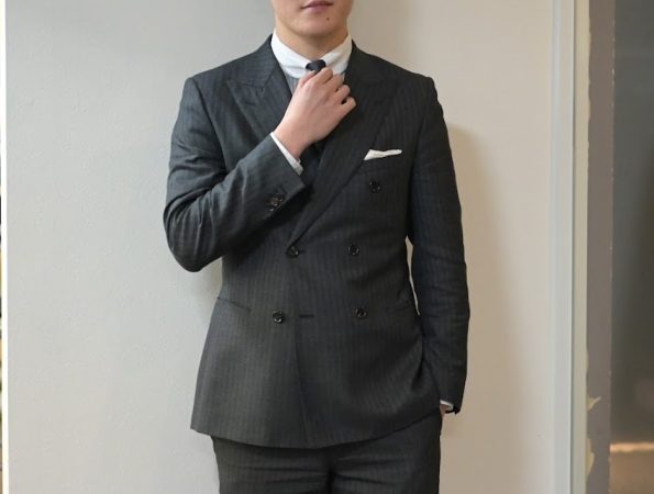 ダブルスーツはシングルのスーツに比べて、そのデティール上スーツ自体がかなり目を引くデザインです!したがってあまり派手な物は選ばず、ダークネイビーやチャコールグレー等のダークトーンのスーツから、入る方が幅が広がります!👍