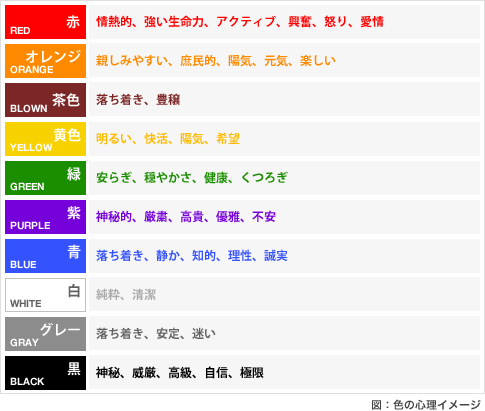 こちらは色が持つ心理的イメージです!色には上記↑↑のような特性があり、それをベースに自分のなりたい雰囲気に合わせて、選んでみると非常に選びやすいです!