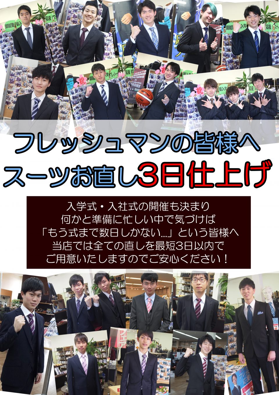 お急ぎでご準備されているご家族の皆様。上記の通りスーツお直し3日以内で仕上げてまいります!