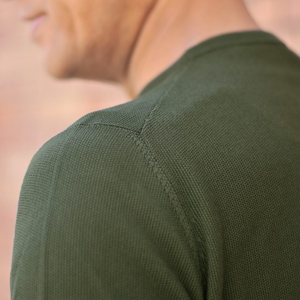 サッパリと着用でき蒸れることなく快適に着て頂けるニットとなります。