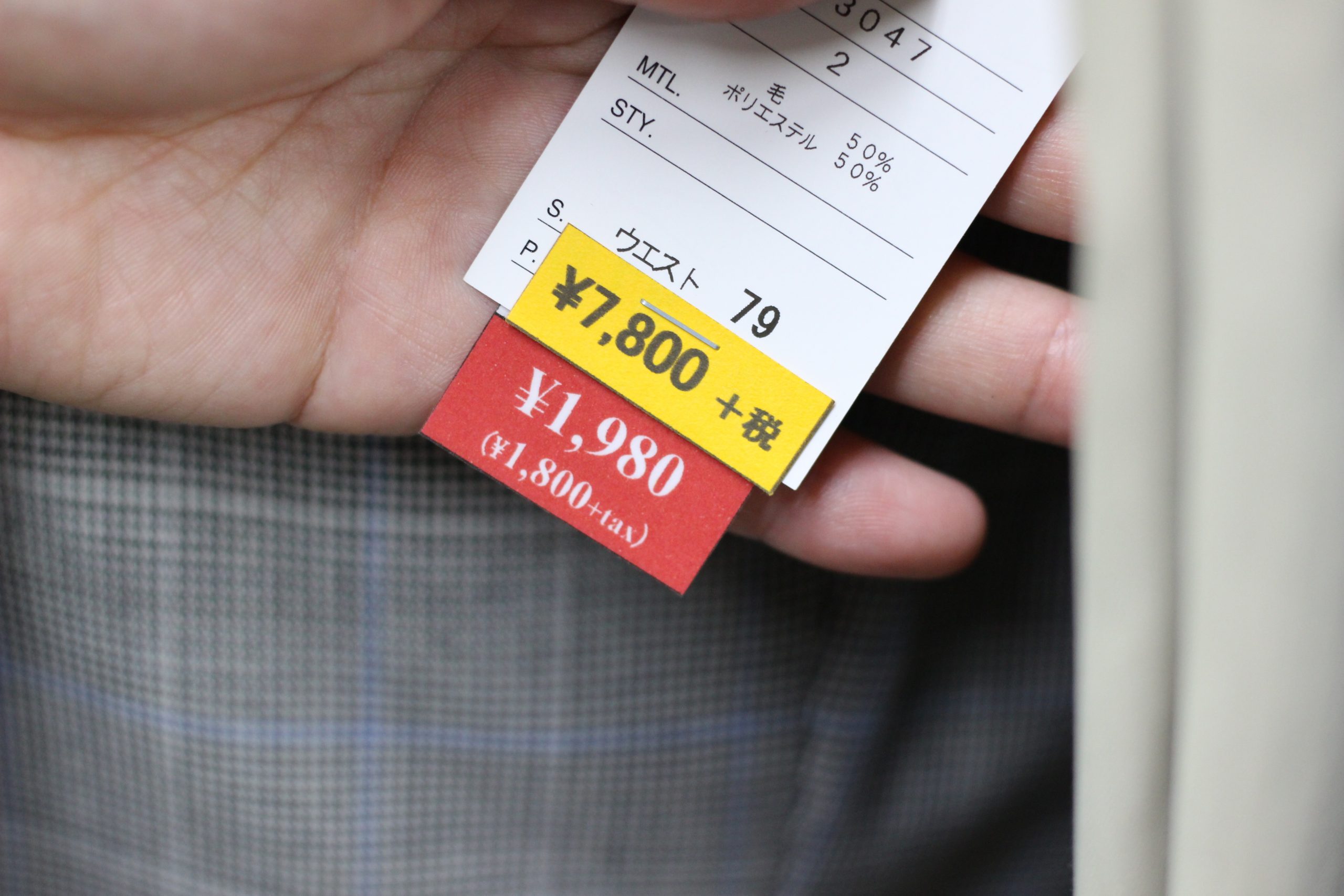もっと言うと5,900円+税なんていうスーツの価格とは思えない物もございます!!もちろん新品未使用ですし素材など商品としてのクォリティーも全くもって問題のないスーツです!