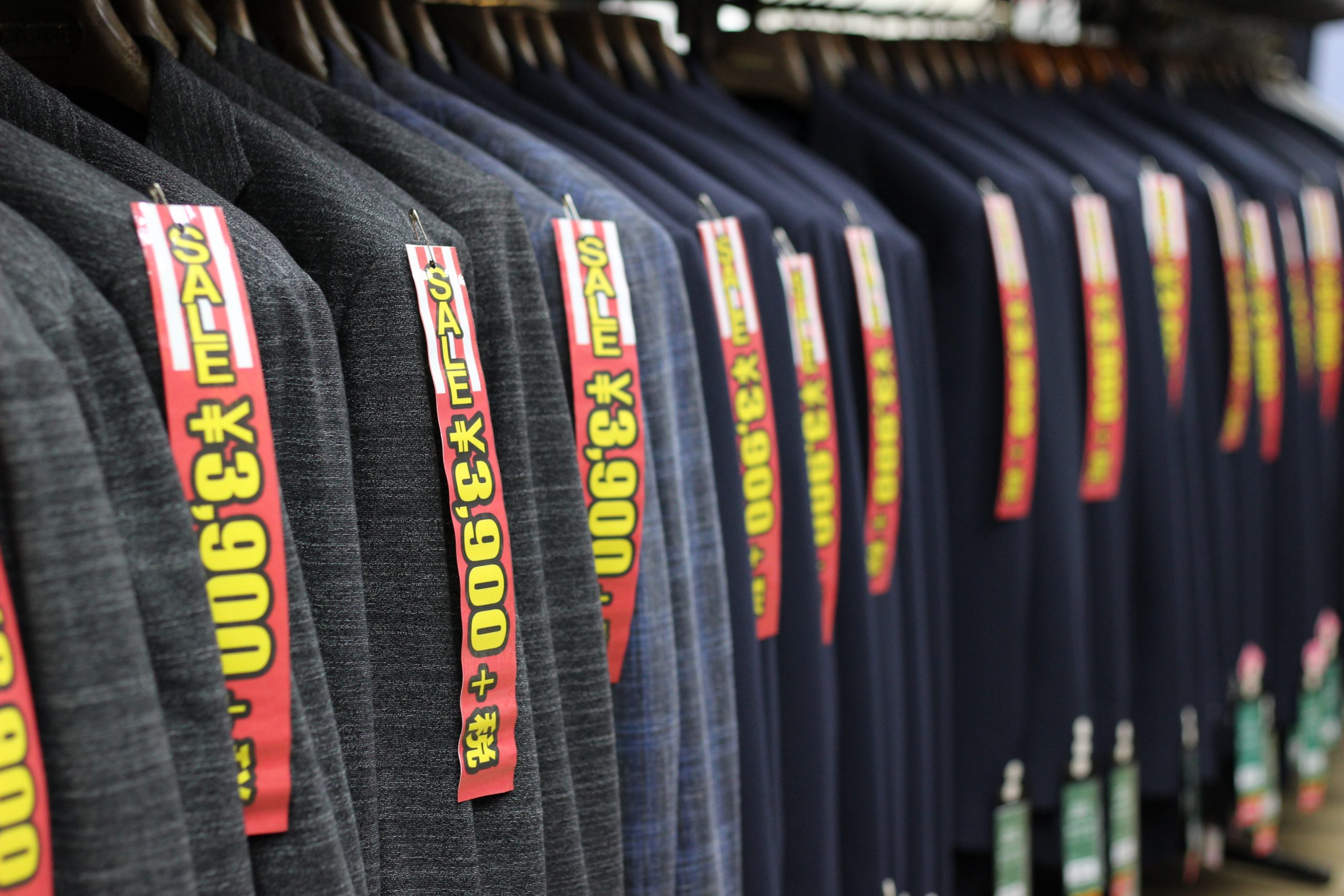 店内どのスーツを手にしてもお得な価格にいたします!普段は倉庫などに保管しているスーツも含めて少なくとも900着以上は出し切ります!!