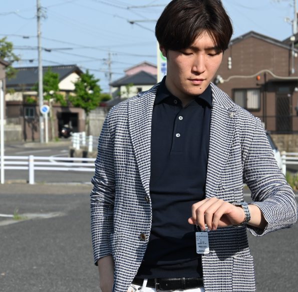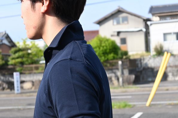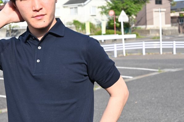 こうすることで、シャツに近い印象を相手に与え、イタリアらしい色気を放ち知的なポロシャツを、よりエレガンス満点に仕上げております!👍