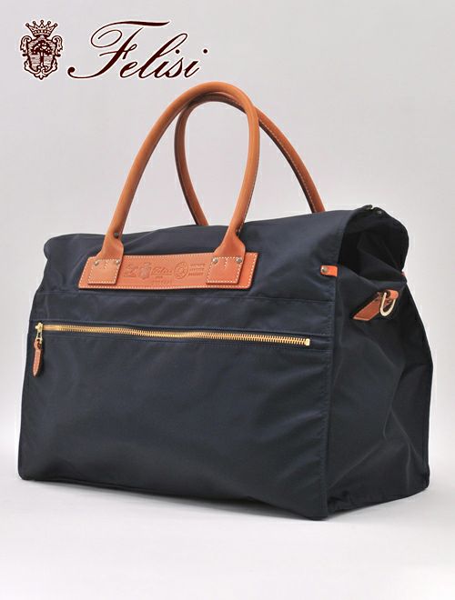フェリージらしいナイロン×バケッタレザーの美しい、コンビ型素材のボストンバック。