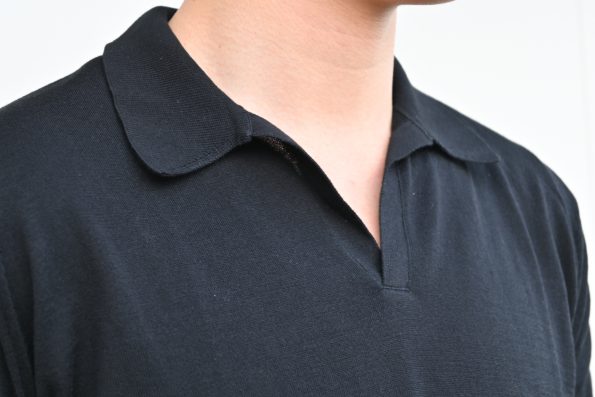 ノアは釦がなく、首・顔周りがよりスッキリで、色気のあるVゾーンを創り出せるスキッパー半袖ポロシャツモデル。