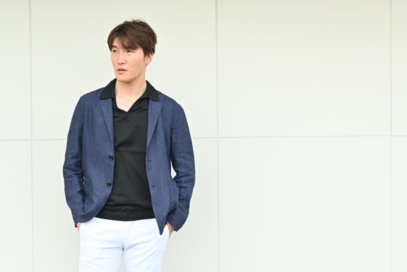 ジャケットのインナーとして着ても、ボタン付きのポロには無い、独特の色気が醸し出せます!(笑)