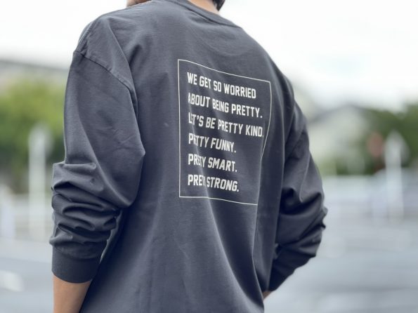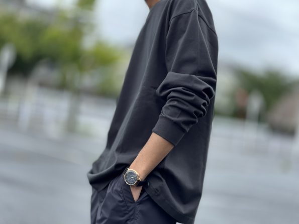 ややオーバーサイズに仕立てられた、今回のロンT 。。。