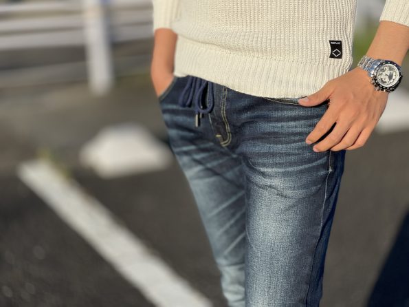 実はドローコードは、ウェストの中に入れ込める仕様になっているので、入れてしまえば普通のデニムに早変わりします♪